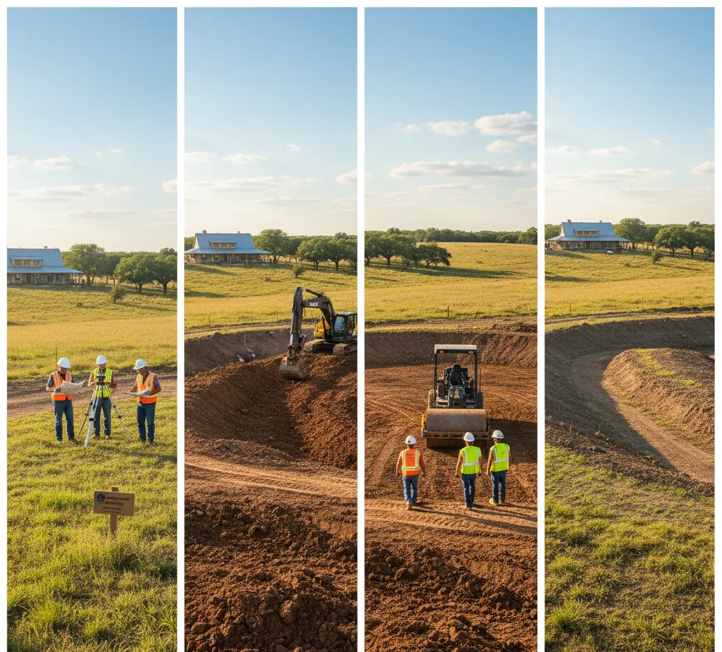 - We excavate, shape, compact, and finish the tank and surrounding work areas.